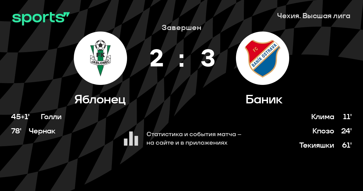 Яблонец – Баник: Яблонец не проигрывает в 5 из 7 последних матчей против этого соперника