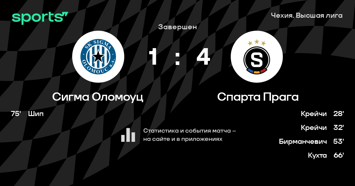 Сигма Оломоуц – Спарта Прага: Спарта Прага забивает в 4 последних матчах против этого соперника