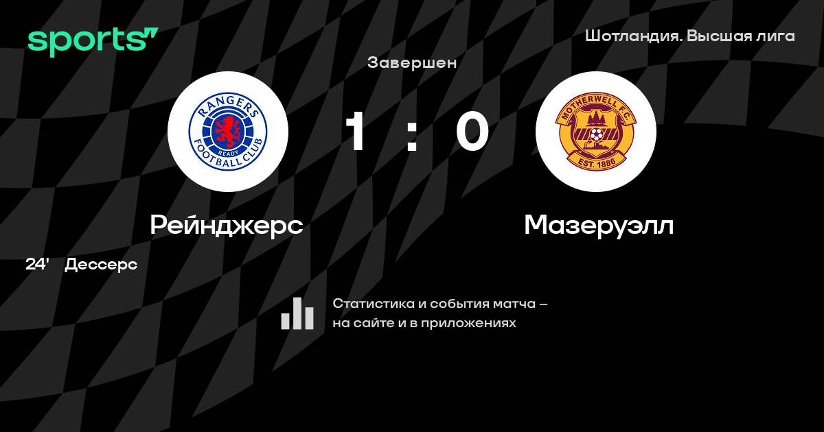 Рейнджерс – Мазеруэлл: Рейнджерс забивает в 18 последних матчах против этого соперника