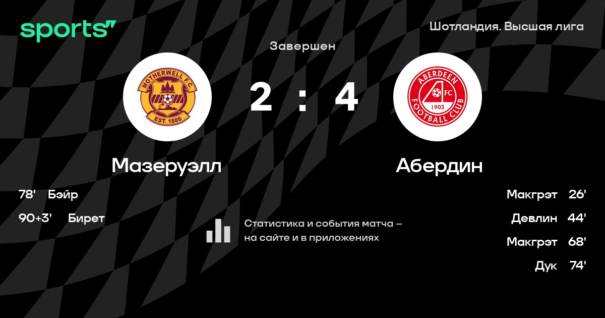 Мазеруэлл – Абердин: Мазеруэлл забивает в 7 последних матчах против этого соперника