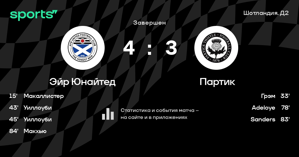 Эйр Юнайтед – Партик: Партик забивает в 18 последних матчах против этого соперника