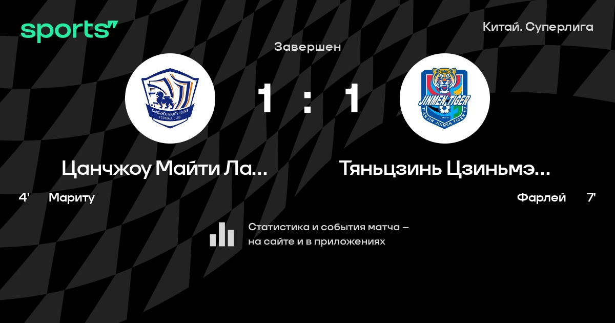 Цанчжоу Майти Лайонс – Тяньцзинь Цзиньмэнь: Тяньцзинь Цзиньмэнь забивает в 6 последних матчах против этого соперника