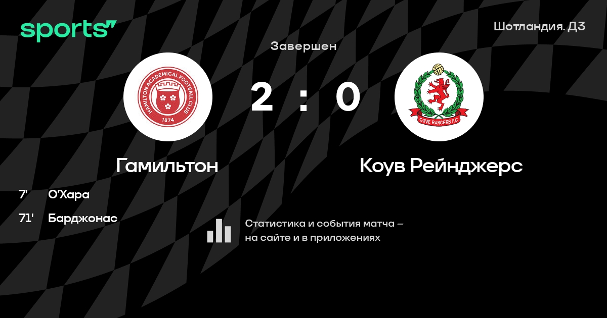 Гамильтон – Коув Рейнджерс: Коув Рейнджерс не проигрывает в 6 из 7 последних матчей против этого соперника