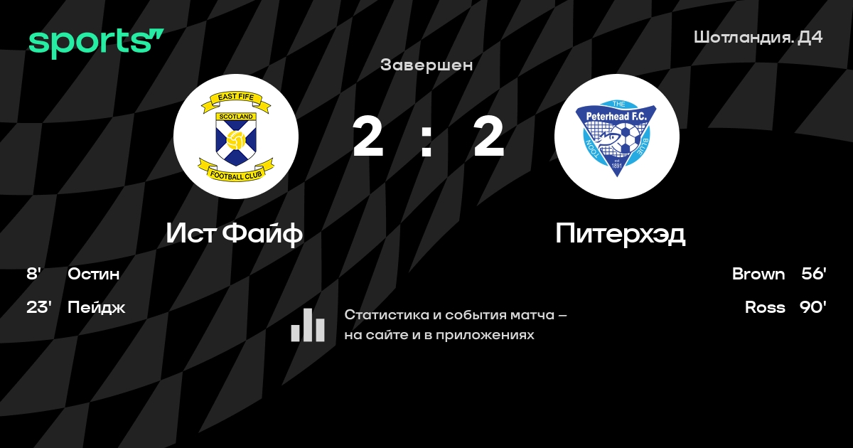 Ист Файф – Питерхэд: Питерхэд не пропускает в 4 последних матчах против этого соперника