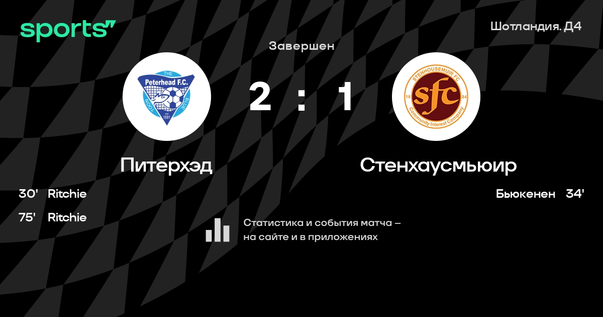 Питерхэд – Стенхаусмьюир: Стенхаусмьюир не проигрывает в 5 из 7 последних матчей против этого соперника