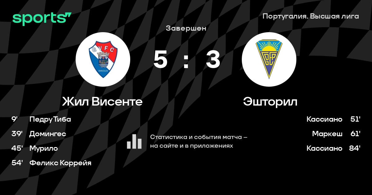 Жил Висенте – Эшторил: Эшторил не пропускает в 3 последних матчах против этого соперника