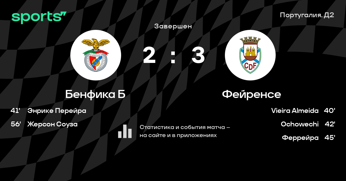 Бенфика Б – Фейренсе: Фейренсе не проигрывает в 6 из 7 последних матчей против этого соперника в гостях