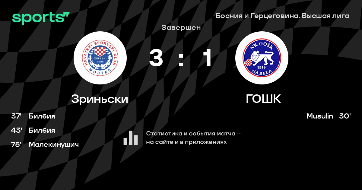 Зриньски – ГОШК: Зриньски не пропускает в 3 последних матчах против этого соперника