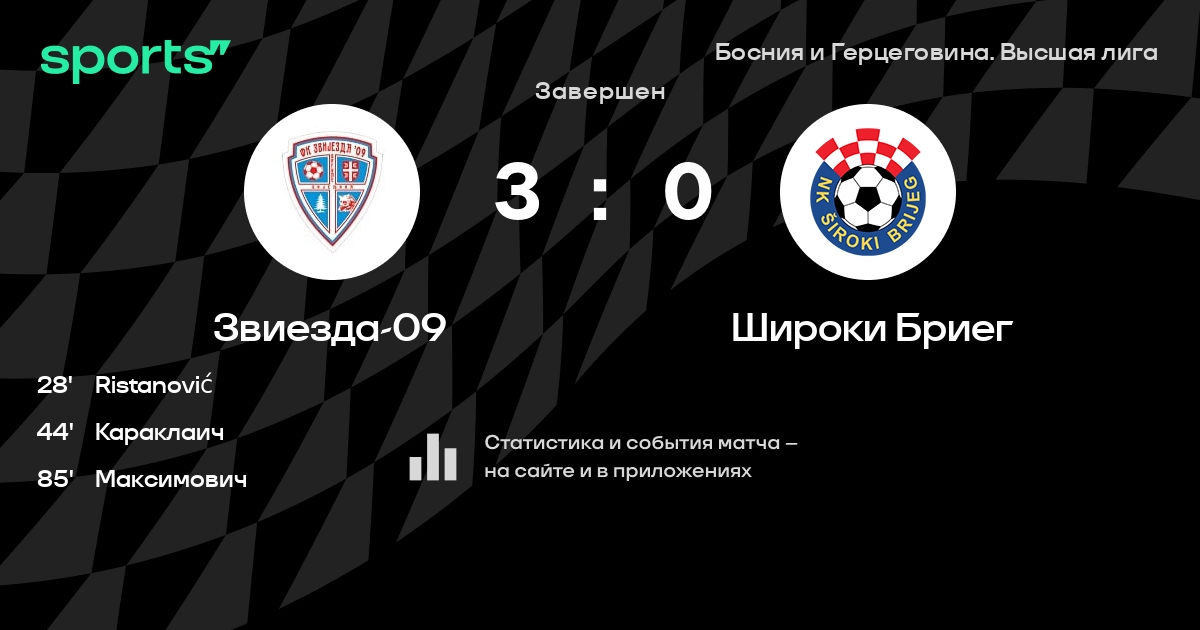 Звиезда-09 – Широки Бриег: Широки Бриег забивает в 5 из 6 последних матчей против этого соперника