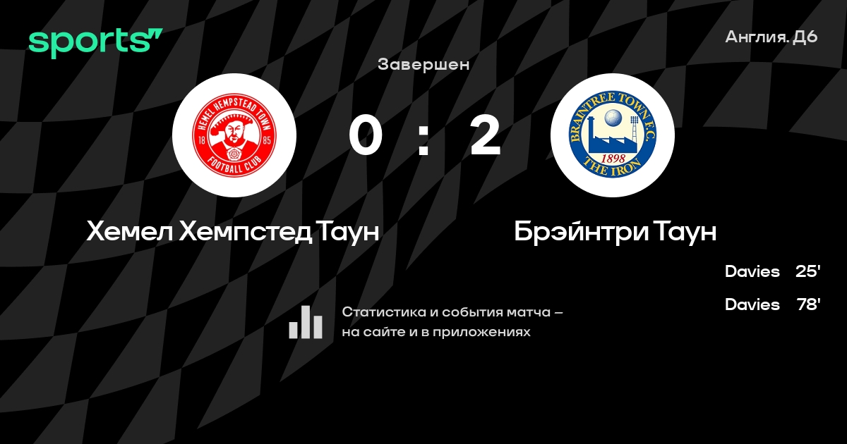 Хемел Хемпстед Таун – Брэйнтри Таун: Хемел Хемпстед Таун забивает в 3 последних матчах против этого соперника