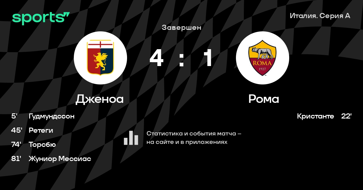 Дженоа – Рома: Рома не пропускает в 4 последних матчах против этого соперника