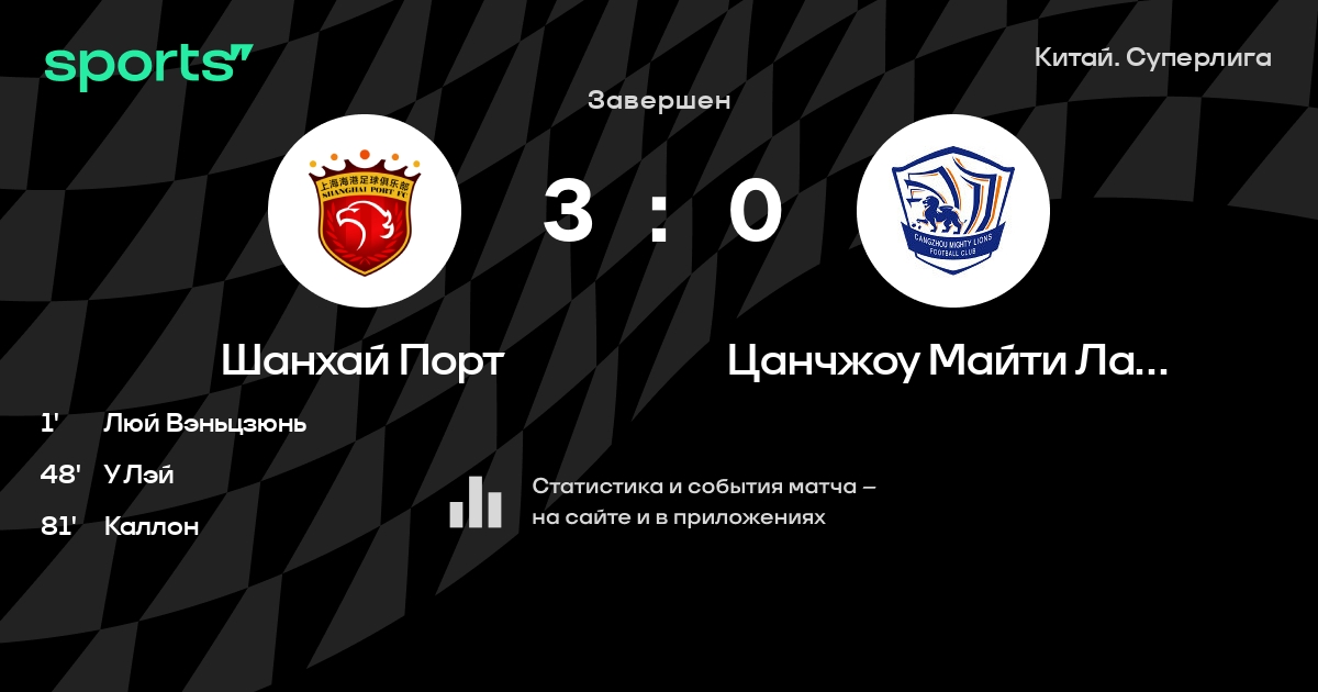 Шанхай Порт – Цанчжоу Майти Лайонс: Шанхай Порт забивает в 10 из 11 последних матчей против этого соперника