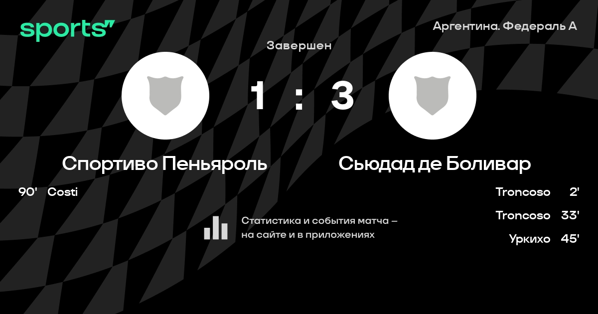 Спортиво Пеньяроль – Сьюдад де Боливар: коэффициенты