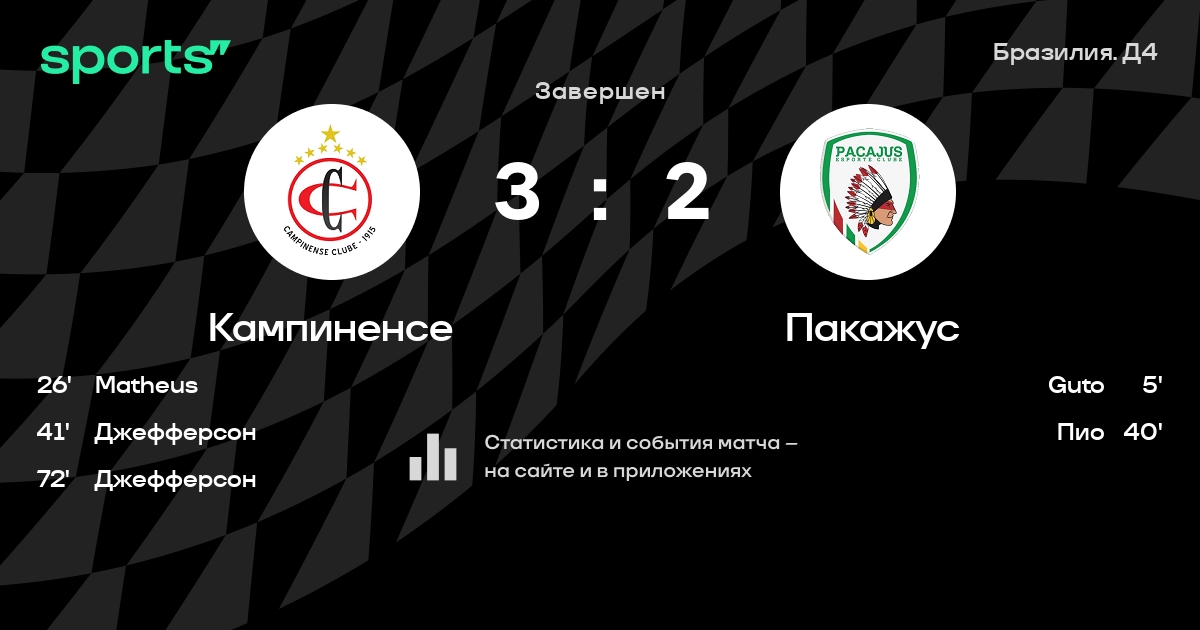 Габриэл Феликс - Ferreira, Ferrari, da Silva Nascimento - Мемо, Cardoso da Silva, Menta de Souza, dos Santos - Джефферсон, Жуниор Пирамбу, da SilvaЗапасные: Moreira de Souza, Medeiros da Silva, Farias da Hora, Oliveira da Silva, Veloso de Lima, Rodrigues Diniz, Barbosa Lima, Ассис де Брито, Silva dos Anjos, Тарсизио, Айрес