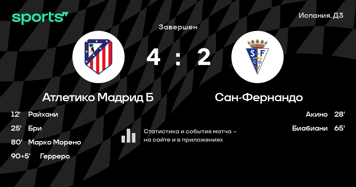 Трансляция Атлетико Мадрид Б - Сан-Фернандо