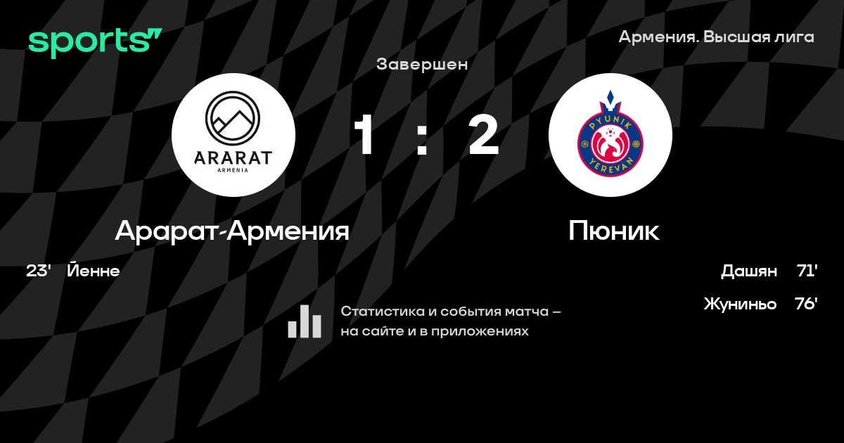 Арарат-Армения – Пюник: Пюник забивает в 6 из 8 последних матчей против этого соперника