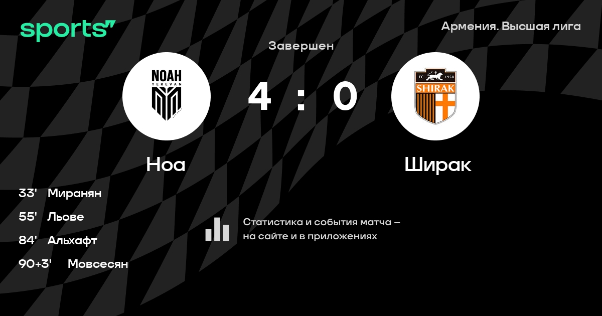 Ноа – Ширак: Ноа забивает в 7 из 9 последних матчей против этого соперника