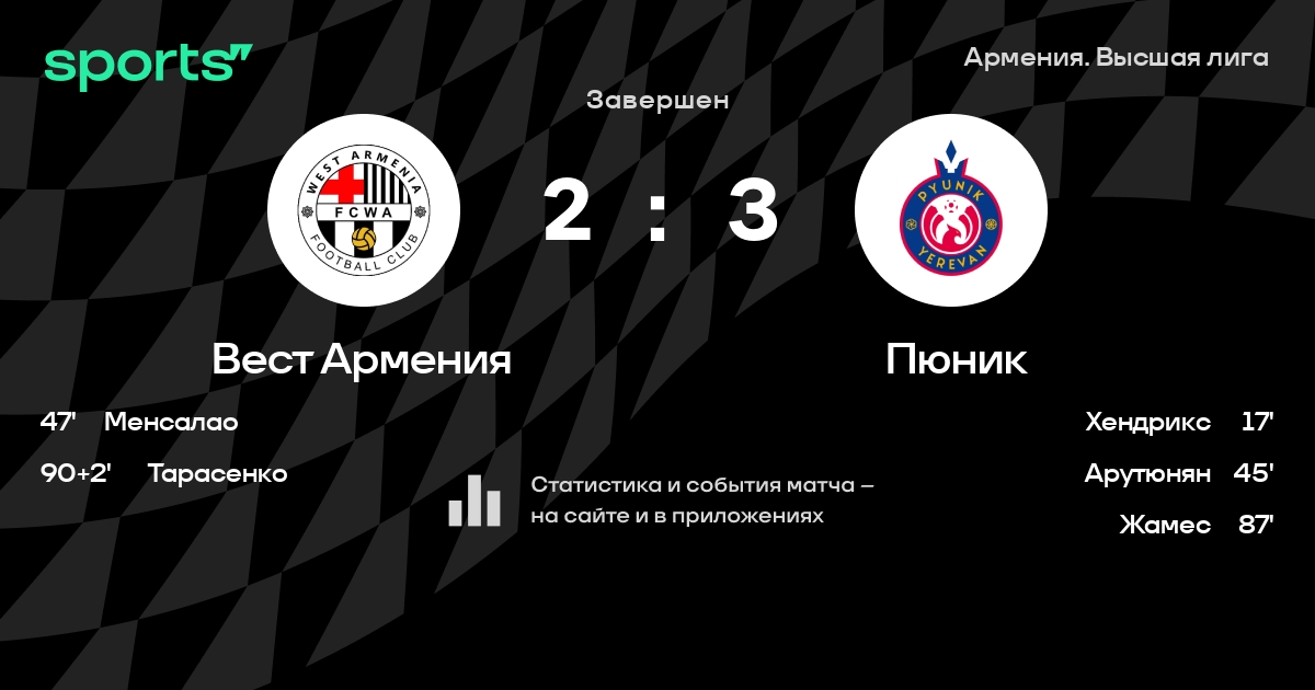 Бучнев - Жуниньо, Коваленко, Братков - Давидян, Дашян, Арутюнян, Режис, Малакян, Марментини - ХендриксЗапасные: Авагян, Авагян, Оганесян, Жамес, Виллела, Григорян, Раванелли, Гонсалвес, Джибрил, Карабальо, Варданян, Отубанджо