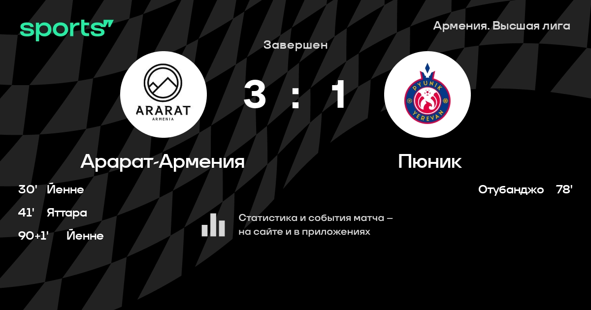 Арарат-Армения – Пюник: Пюник забивает в 4 последних матчах против этого соперника