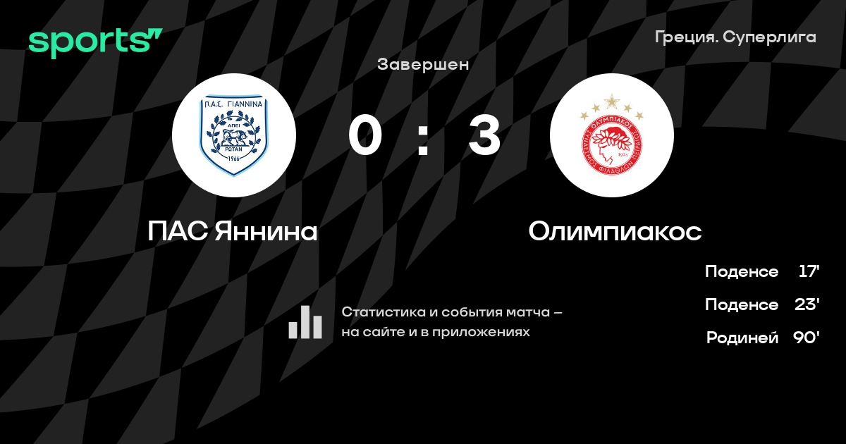 ПАС Яннина – Олимпиакос: Олимпиакос не проигрывает в 12 последних матчах против этого соперника