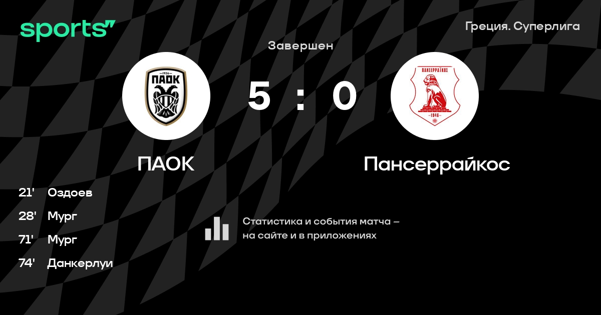 ПАОК – Пансеррайкос: ПАОК не проигрывает в 7 последних матчах против этого соперника