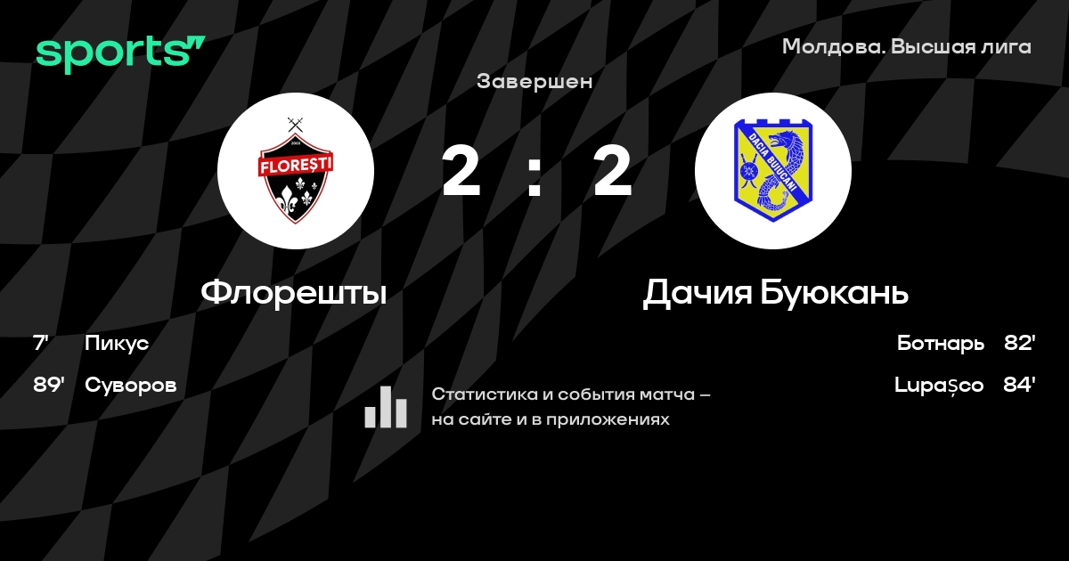 Флорешты – Дачия Буюкань: Флорешты не проигрывает в 5 из 6 последних матчей против этого соперника