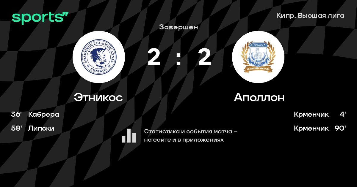 Этникос – Аполлон: Аполлон побеждает в 5 последних очных матчах