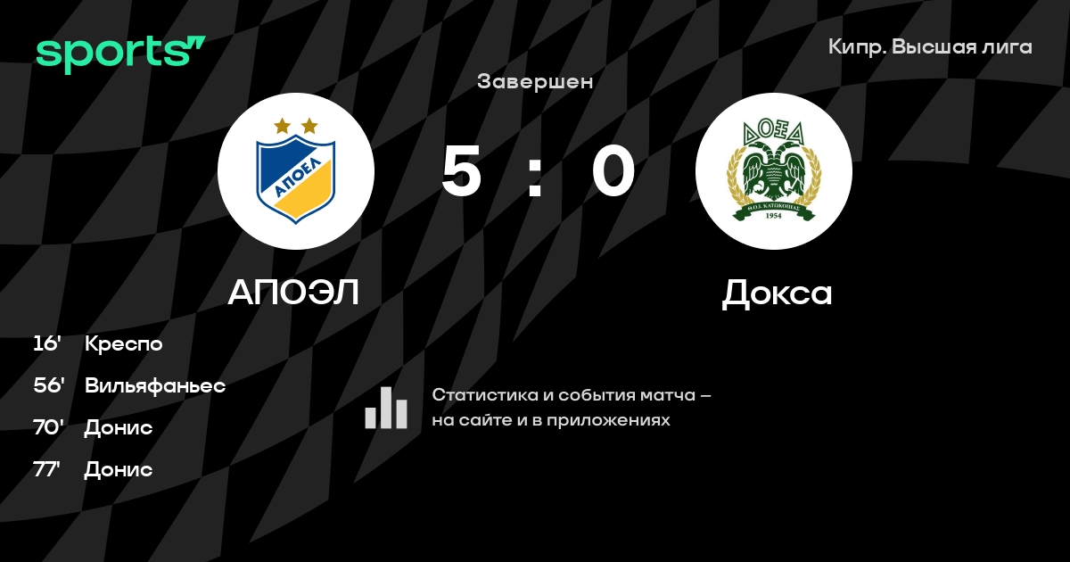 АПОЭЛ – Докса: АПОЭЛ не проигрывает в 7 последних матчах против этого соперника