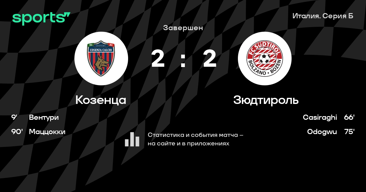 | 9 | Козенца | 38 | 11 | 14 | 13 | 47 | 42 | +5 | 47 | ||