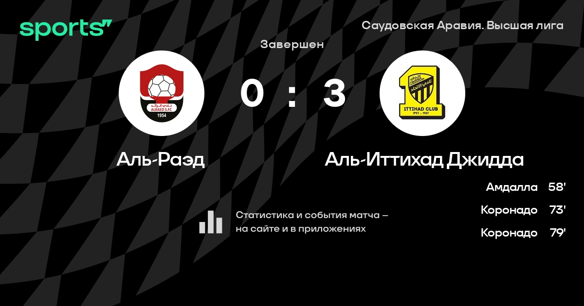 Аль-Раэд – Аль-Иттихад Джидда: Аль-Иттихад Джидда не проигрывает в 9 последних матчах против этого соперника