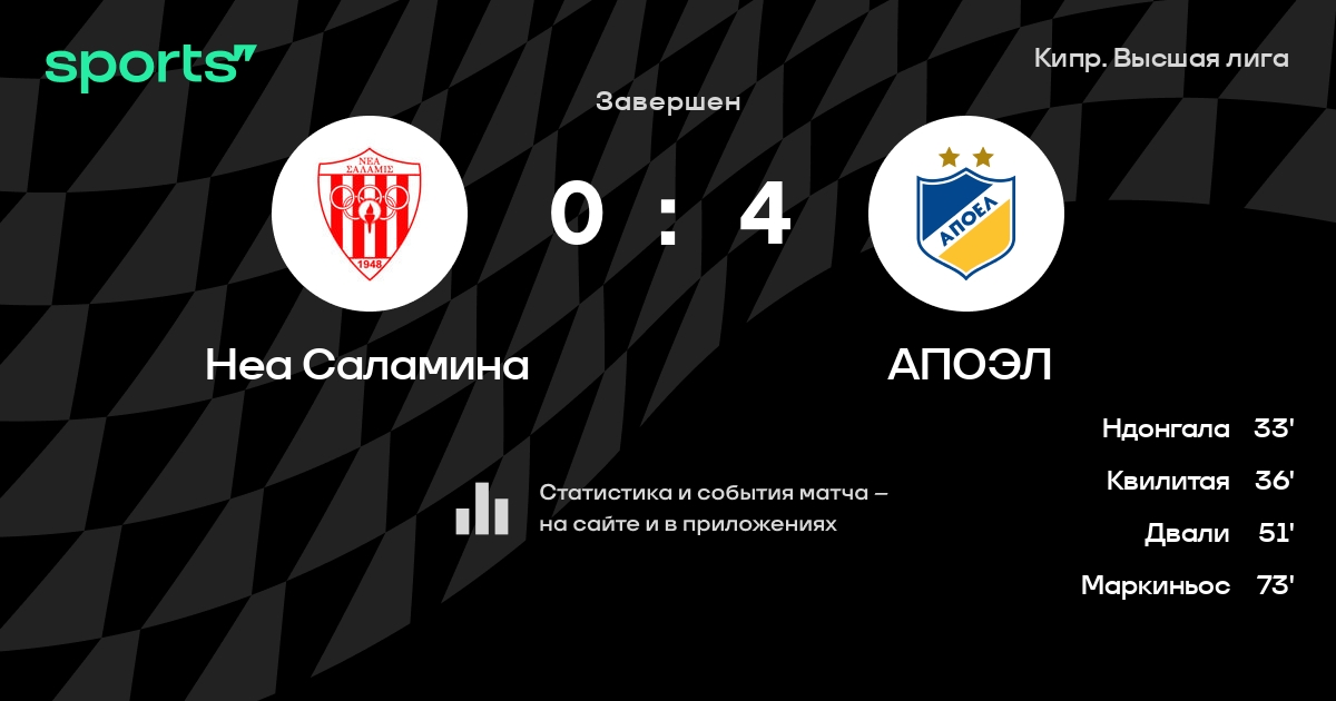 Неа Саламина – АПОЭЛ: АПОЭЛ побеждает в 4 последних очных матчах