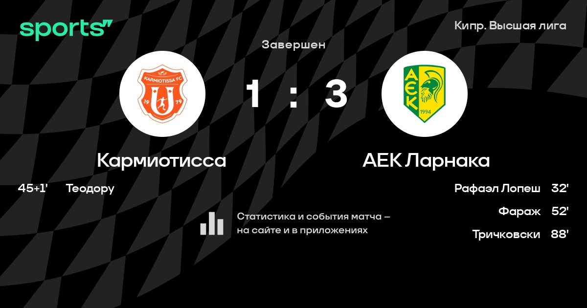 Кармиотисса – АЕК Ларнака: АЕК Ларнака побеждает в 4 последних очных матчах