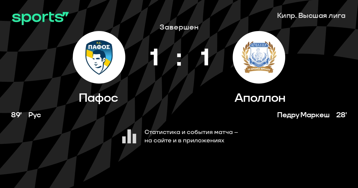 Пафос – Аполлон: Пафос не проигрывает в 7 из 9 последних матчей против этого соперника