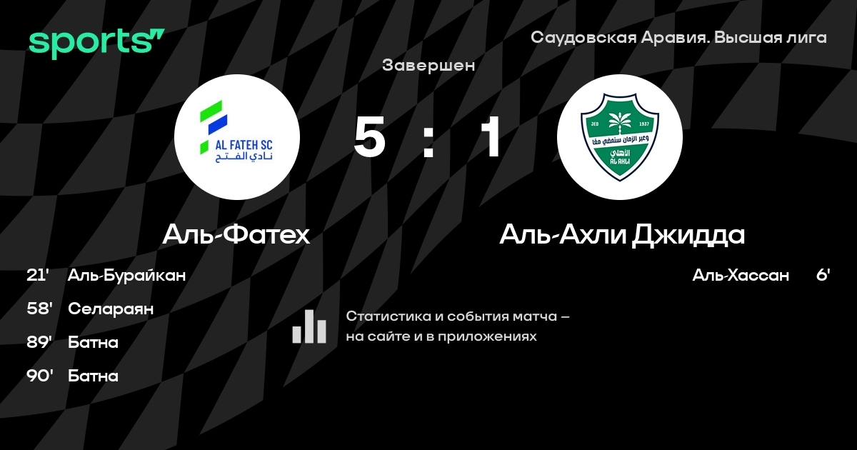 Аль-Фатех – Аль-Ахли Джидда: Аль-Ахли Джидда забивает в 4 последних матчах против этого соперника