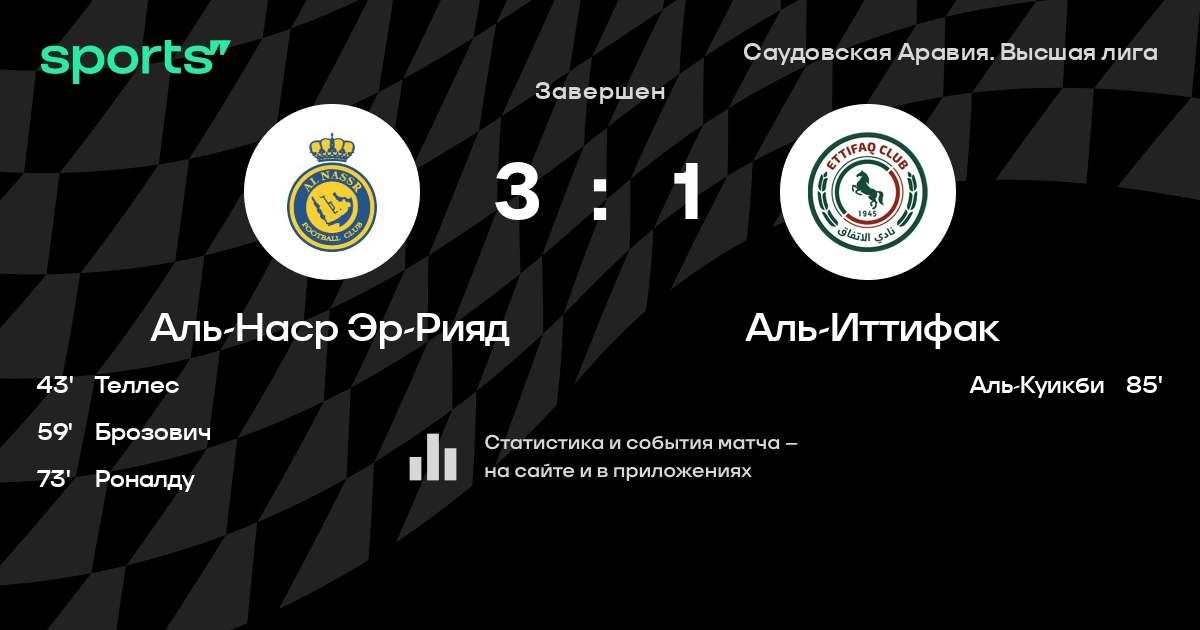 Аль-Наср Эр-Рияд – Аль-Иттифак: Аль-Наср Эр-Рияд забивает в 6 последних матчах против этого соперника