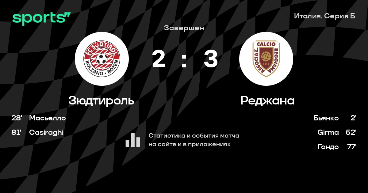 Зюдтироль – Реджана: Реджана забивает в 6 последних матчах против этого соперника