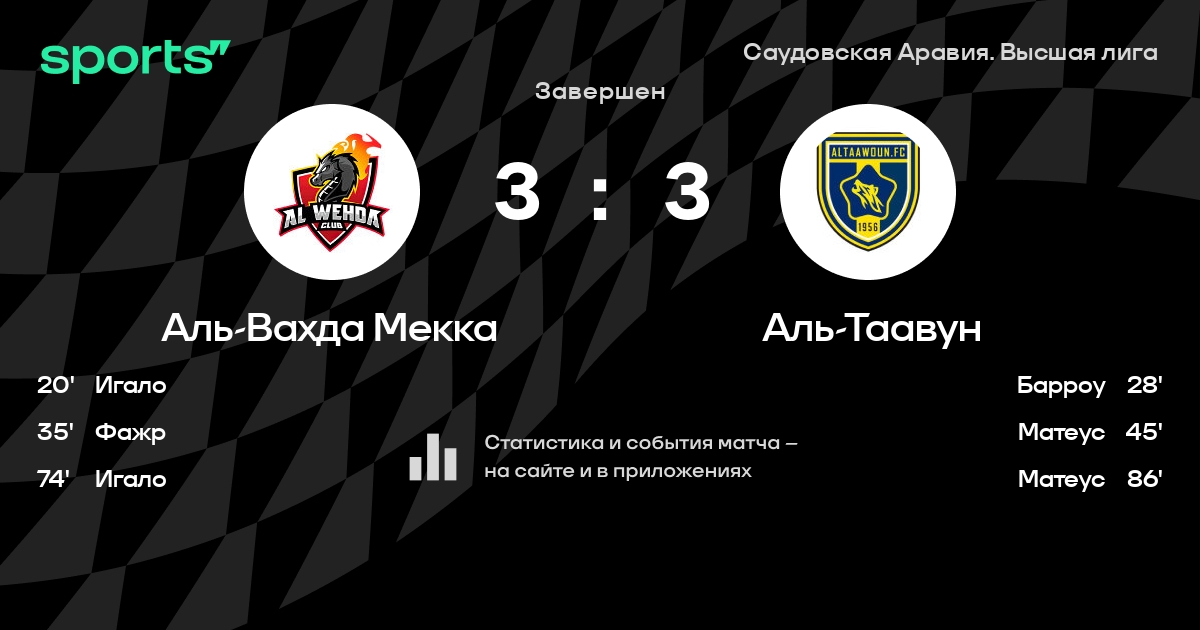 Аль-Вахда Мекка – Аль-Таавун: Аль-Таавун забивает в 17 последних матчах против этого соперника