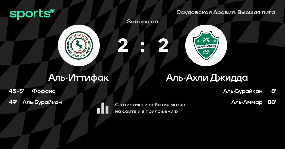 Аль-Иттифак – Аль-Ахли Джидда: коэффициенты