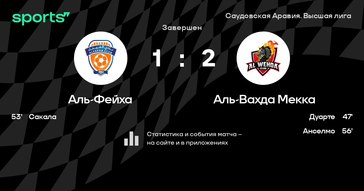 Аль-Фейха – Аль-Вахда Мекка: Аль-Фейха не проигрывает в 5 из 7 последних матчей против этого соперника