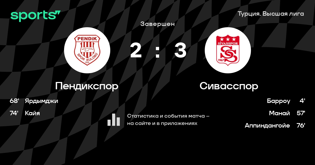Пендикспор – Сивасспор: коэффициенты