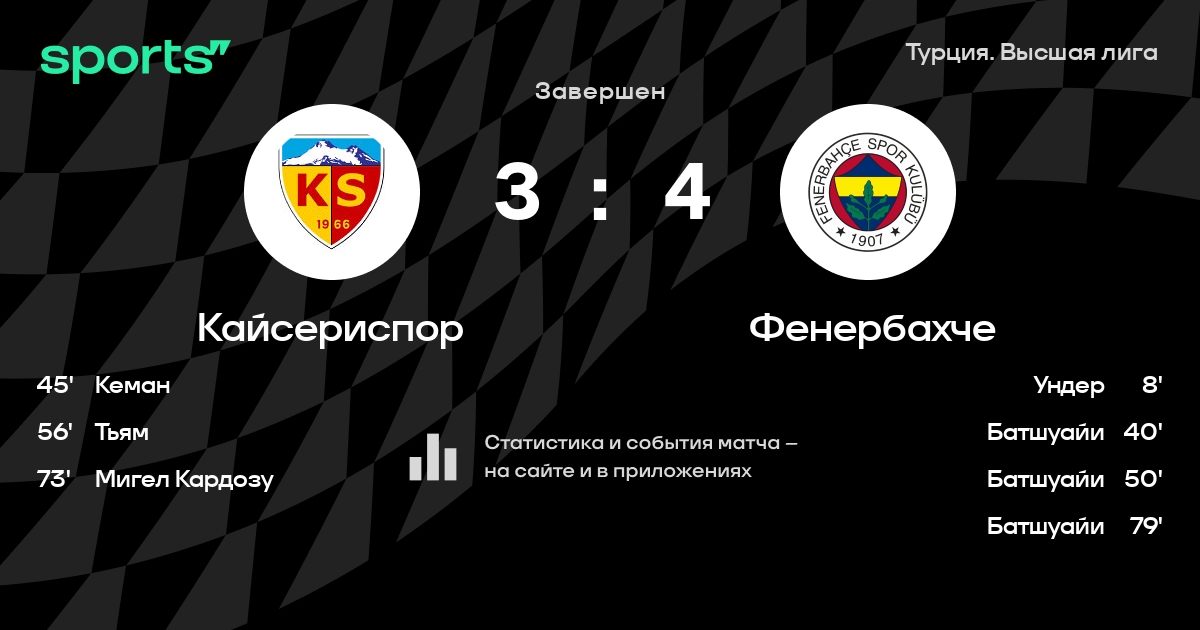 Кайсериспор – Фенербахче: Фенербахче побеждает в 4 последних очных матчах