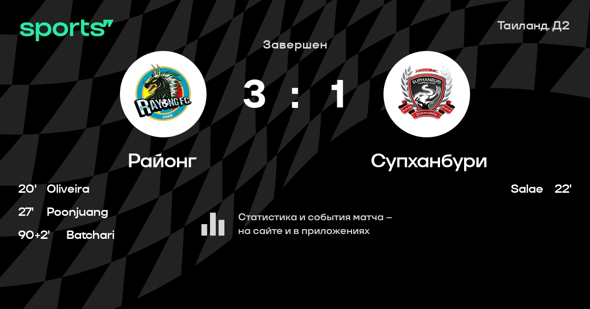 Результат прошлой игры в турнире «Лига 2»: Pattaya Discovery United FC – Супханбури 2:0. После 13 туров Супханбури набирает 21 очков и занимает 7 место в турнире. Лучший бомбардир команды – Gustavinho: он забил 8 в 13 матчах. Супханбури проигрывает в 3 последних матчах в рамках турнира «Лига 2». В 3 последних матчах в турнире «Лига 2» Супханбури обязательно забивает. Супханбури пропускает в 3 последних матчах в турнире «Лига 2». В последних 5 играх Супханбури забивает 5 голов. В последних 5 играх Супханбури пропускает 6 голов.