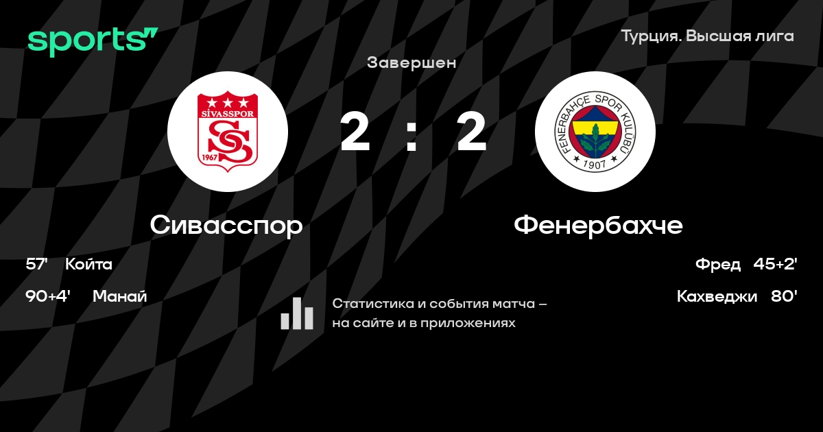 Сивасспор – Фенербахче: Фенербахче не проигрывает в 7 последних матчах против этого соперника
