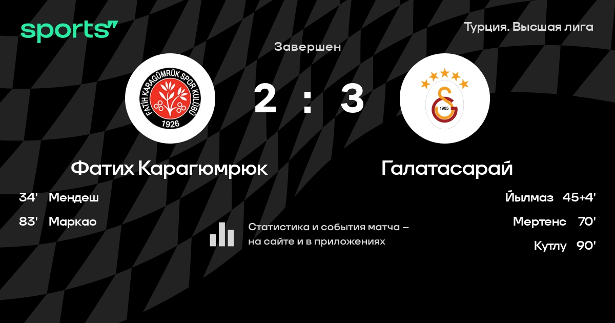 Фатих Карагюмрюк – Галатасарай: Галатасарай не проигрывает в 6 из 8 последних матчей против этого соперника