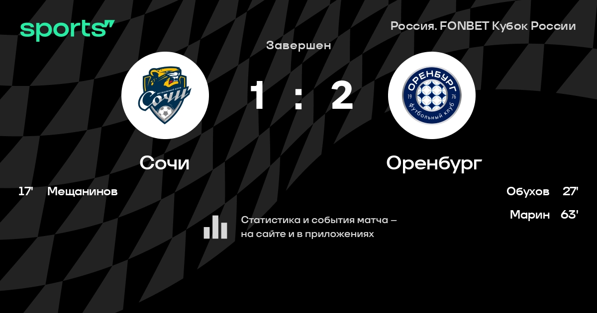 Сочи – Оренбург: Оренбург не пропускает в 3 последних матчах против этого соперника