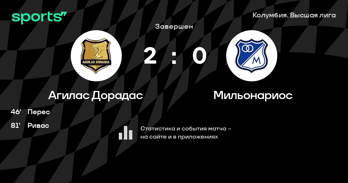 Рионегро Агилас – Мильонариос: Мильонариос не пропускает в 0 из 8 последних матчей против этого соперника