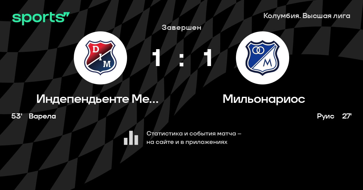Индепендьенте Медельин – Мильонариос: Мильонариос не проигрывает в 5 из 7 последних матчей против этого соперника
