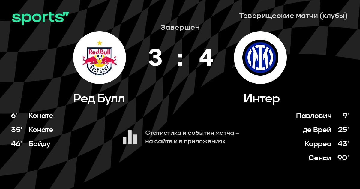 Зоммер - Бастони, де Врей, Дармиан - Димарко, Мхитарян, Чалханоглу, Барелла, Думфрис - М. Тюрам, КорреаЗапасные: Ди Дженнаро, Станкович, Биссек, Гозенс, Лазаро, Стабиле, Аслани, Куадрадо, Фраттези, Сенси, Станкович, Эспозито