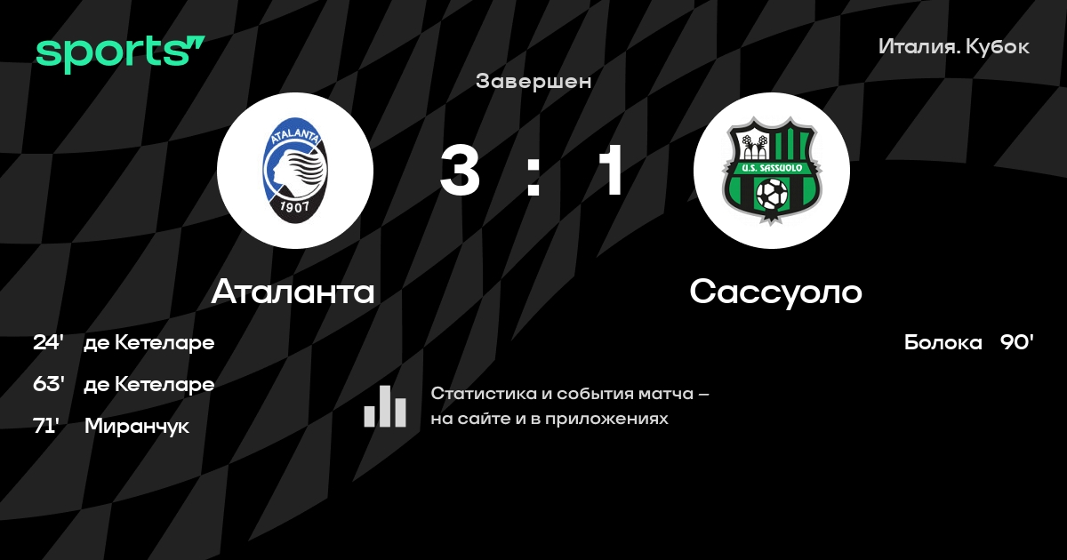 Муссо - Колашинац, Джимшити, Скальвини - Дзаппакоста, Пашалич, де Рон, Эдерсон, Хольм - Миранчук, де КетелареЗапасные: Карнезекки, Росси, Баккер, Бонфанти, Хин, Паломино, Руджери, Дзортеа, Копмейнерс, Муриэль, Скамакка