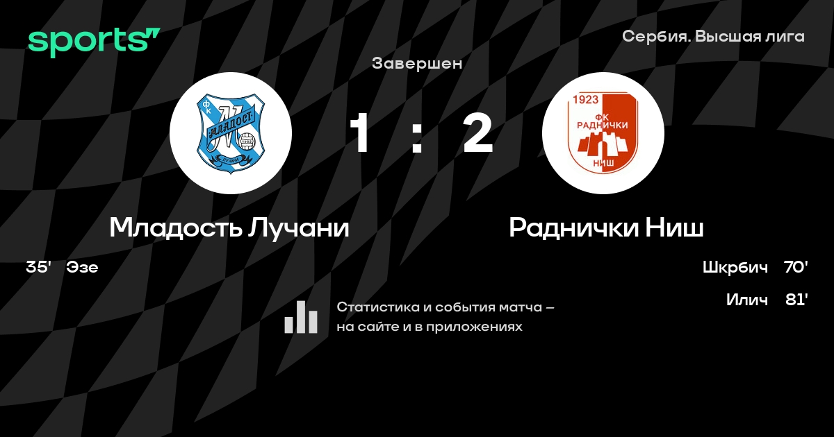 Младость Лучани – Раднички Ниш: Младость Лучани не проигрывает в 5 последних матчах против этого соперника дома